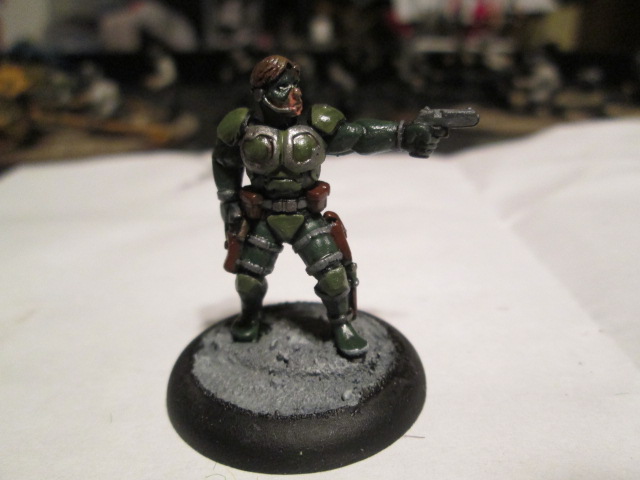 Comments: This was me playing around with the Vallejo Jade Green, some washes and some light drybrushing. Overall it turned out well and I intend to use her as some type of gas based bad guy (or girl in this case)